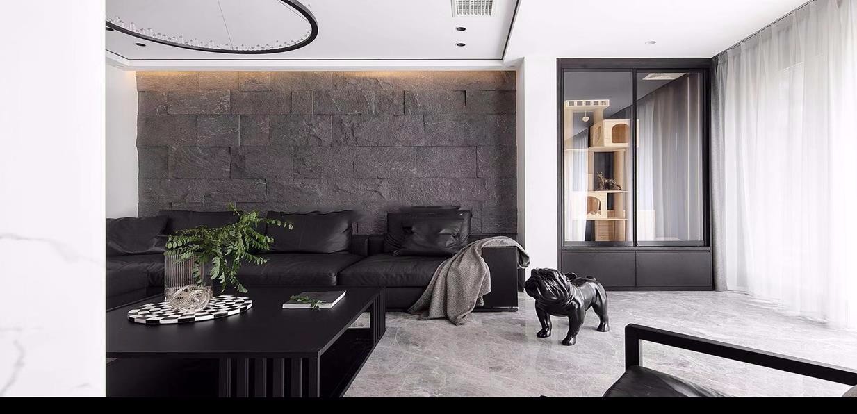 客厅,整体客厅空间主要以黑白灰的基本色调,摒弃了任何风格要素,舍去所有繁重的造型,以最自然,最无形的风貌呈现,空间温暖、明亮。沙发尽显温暖与舒适,黑色古典木质家具,每一处的小装饰都带有小巧思。