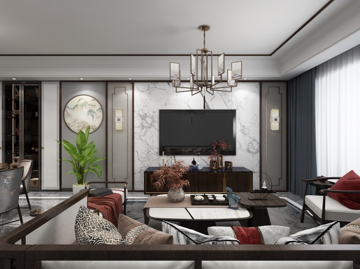 140平新中式效果--客厅
