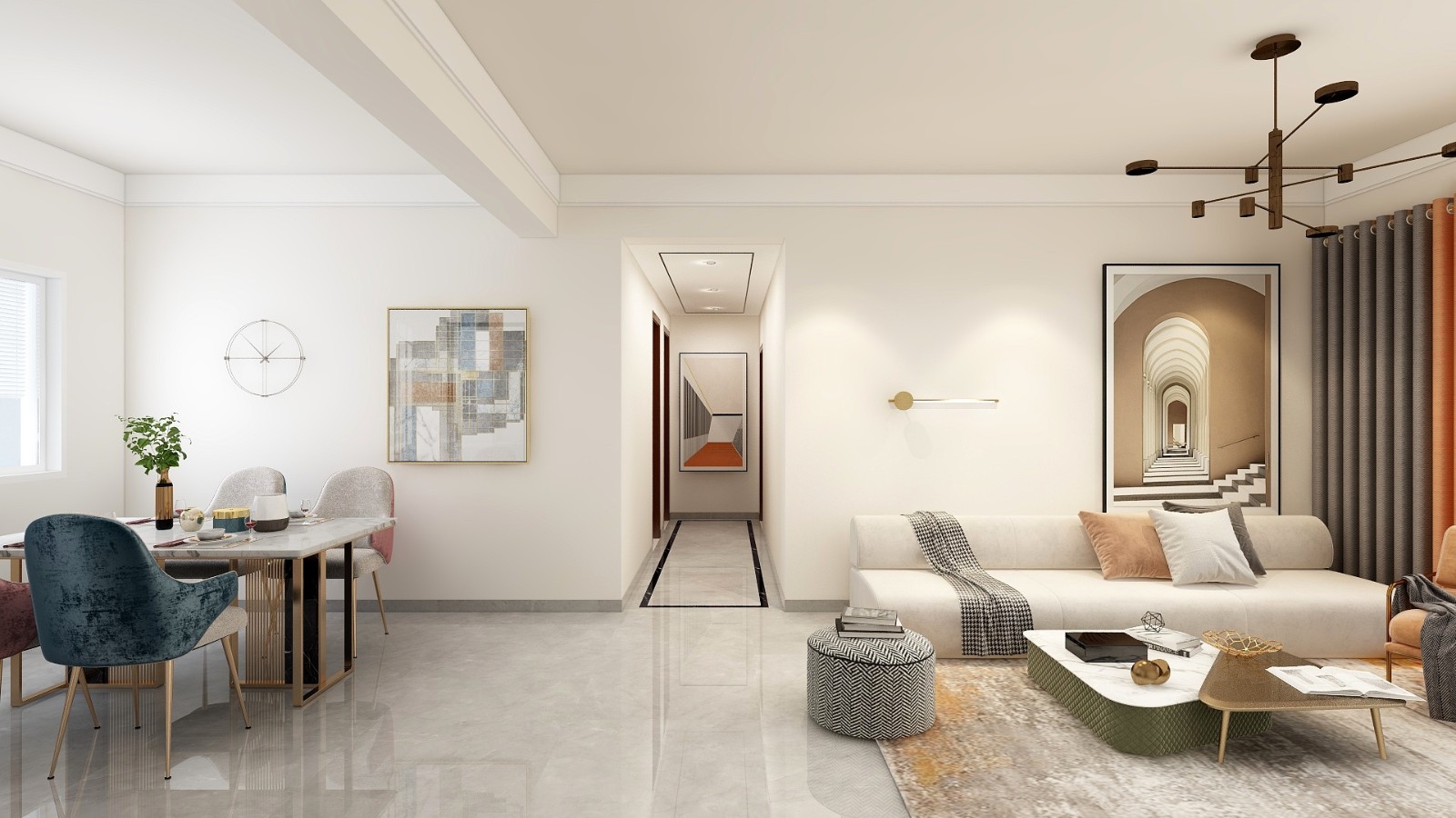 串联各场域视觉景深,依据光韵与折射角度不同产生万千居家样貌,温柔搭接起日常起居,简而不减的温柔默契。