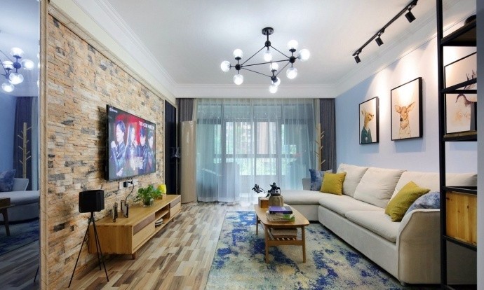 客厅结合了北欧与工业风的整体设计,既有工业风的粗犷理性又融合了北欧的温馨。