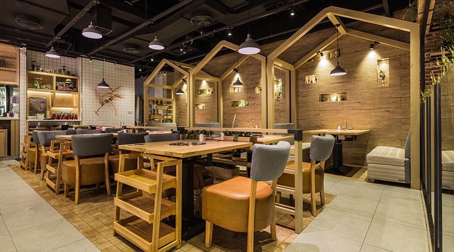 木制框架框住就餐区域