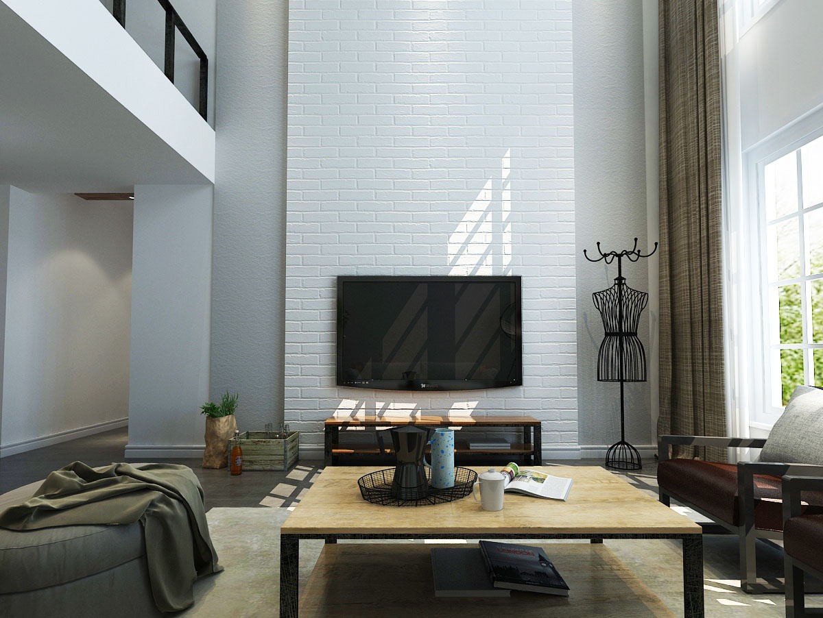 此户型属于单层比较紧凑的挑高层空间,层高4.8m,考虑男主人是一个人居住,日常有其他居所,结合一楼会客功能及日常活动需要,把客厅区域做挑高处理,作为家居环境中的突出空间。