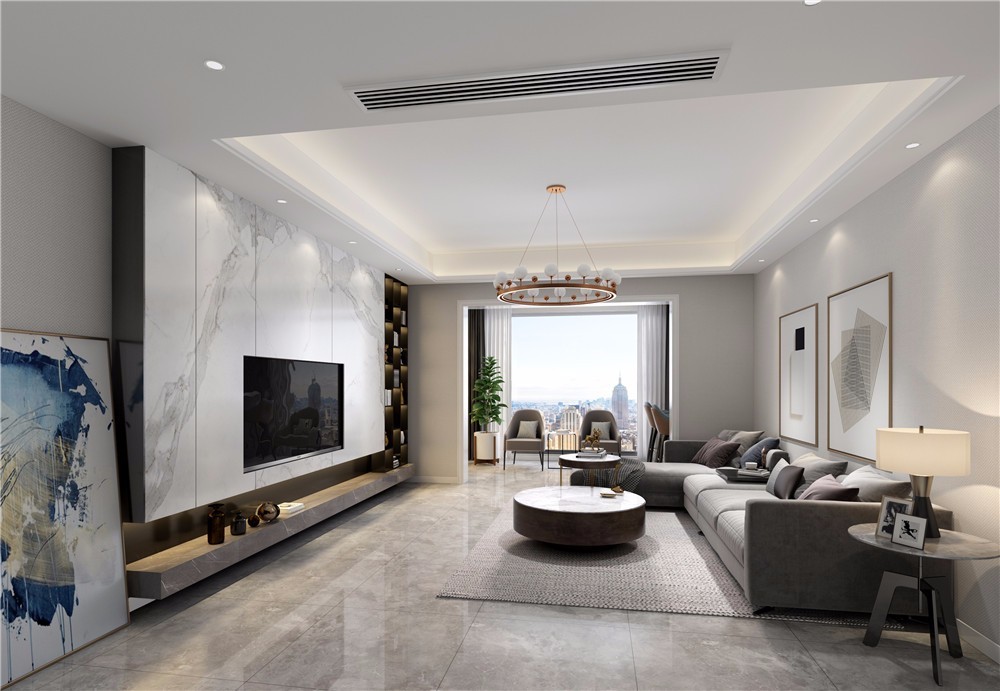 本案例为现代简约风的三室两厅。简约风不等于简单的堆砌和平淡的摆放,本案设计着重色彩的高度凝练及材料的高质感,整体配搭有着一份独具匠心的简练,美观与实用并存。