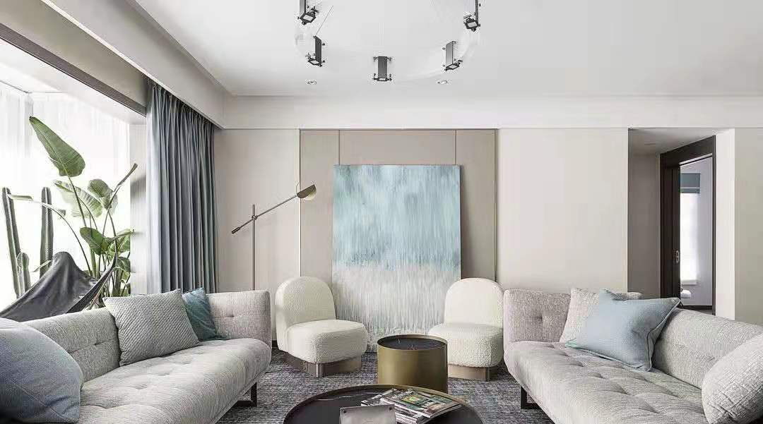 因为客厅的空间很大,又不放电视,足够折腾。决定打破传统常规的组合式沙发,选择了大气独立的对摆式沙发,让整个空间和谐又独立