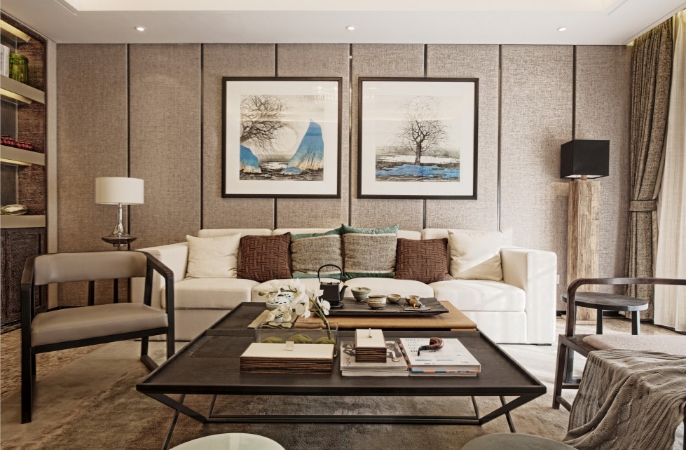 本案的设计风格是新中式与现代风格的结合,打破了中式的框架,简约而充满***,清新并不厚重。主题采用了中国传统文化书画艺术形式为主,以及古典音乐、茶文化等等