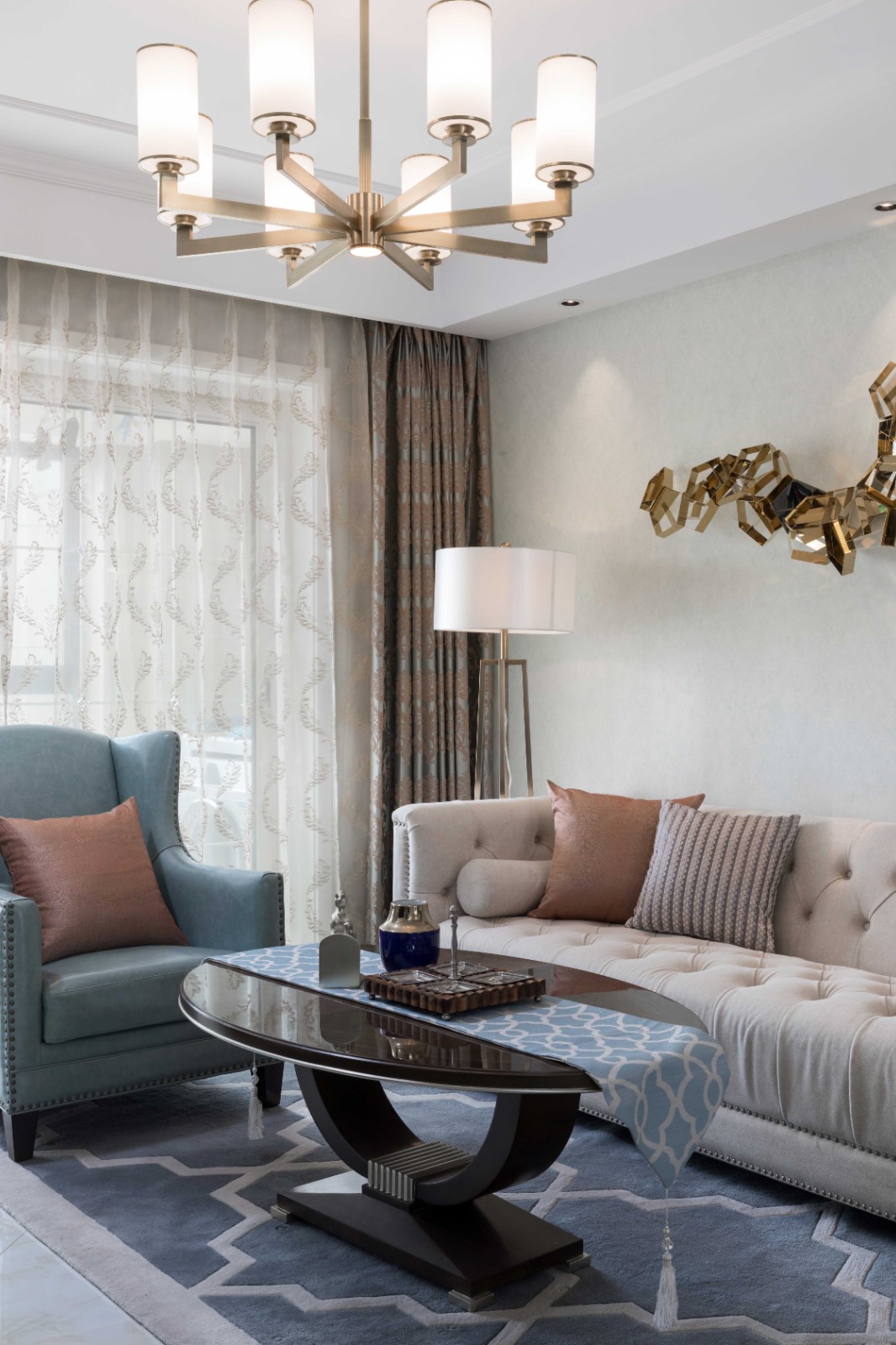 精致简洁的硬装效果搭配时髦的家具,加上夸张的金属装饰品,让空间***上做到了业主想要的氛围。