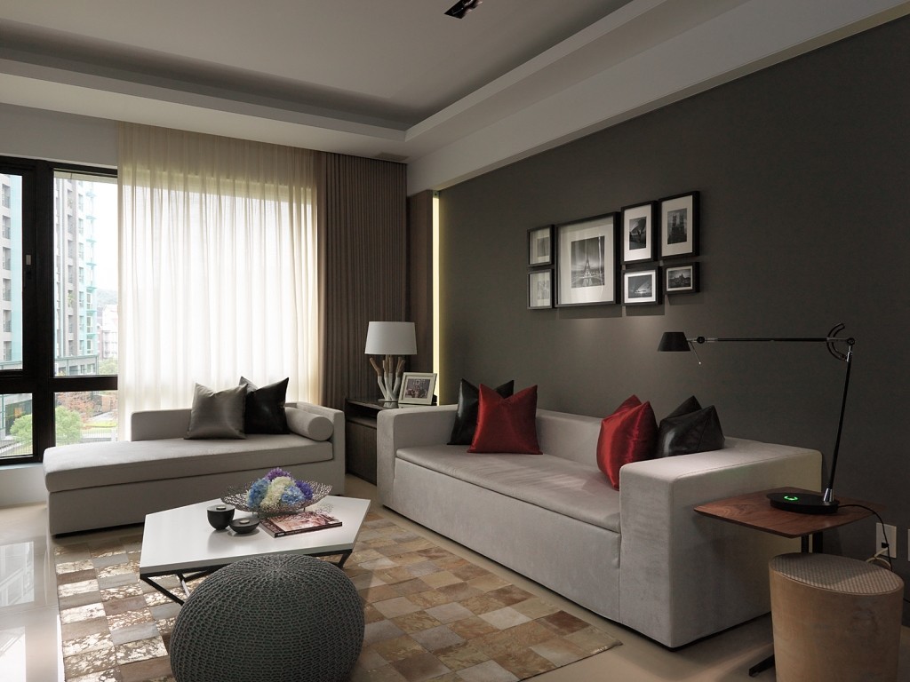 家具的造型线条简洁大方,门窗简洁透光,家具低矮且不多,从而给人以宽敞明亮的感觉。