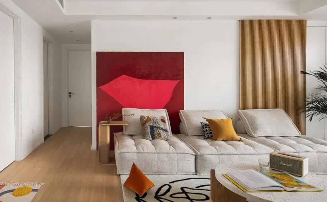 白色为全家的主色调,搭配有着很强***力的画去调和空间