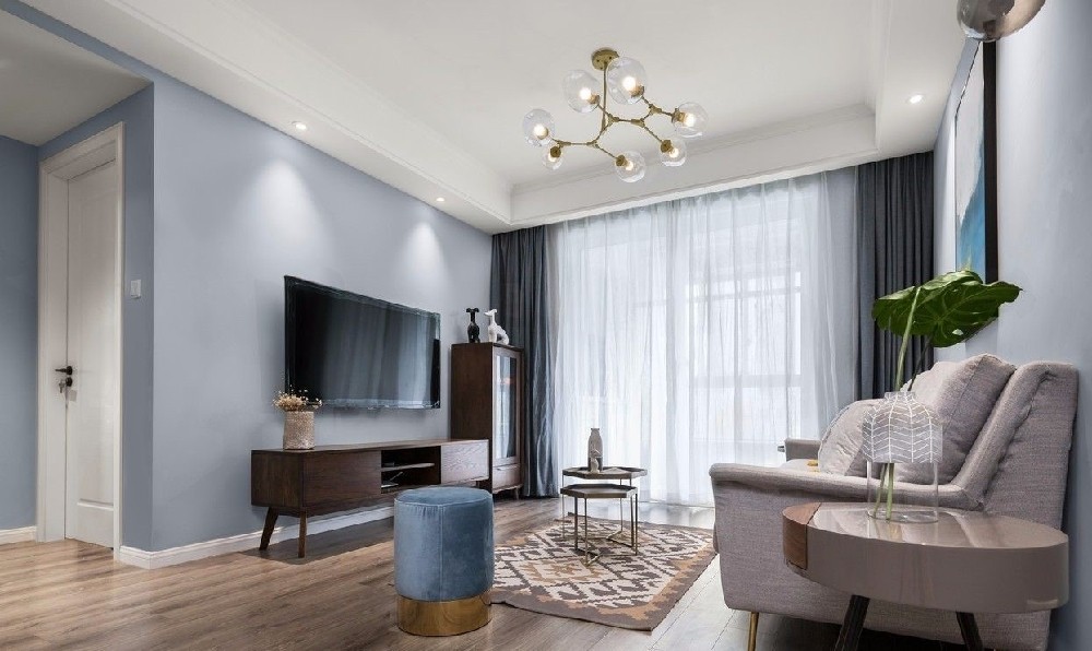 本案户型不大,根据业主的需求和预算最终确定为北欧风格。所以在功能设计上力求实用,简洁,色彩上以清新为主导,以蓝色,咖色作基础色调,软装做提升,最终效果清新恬适。而***的效果应该是让我们爱上回家。