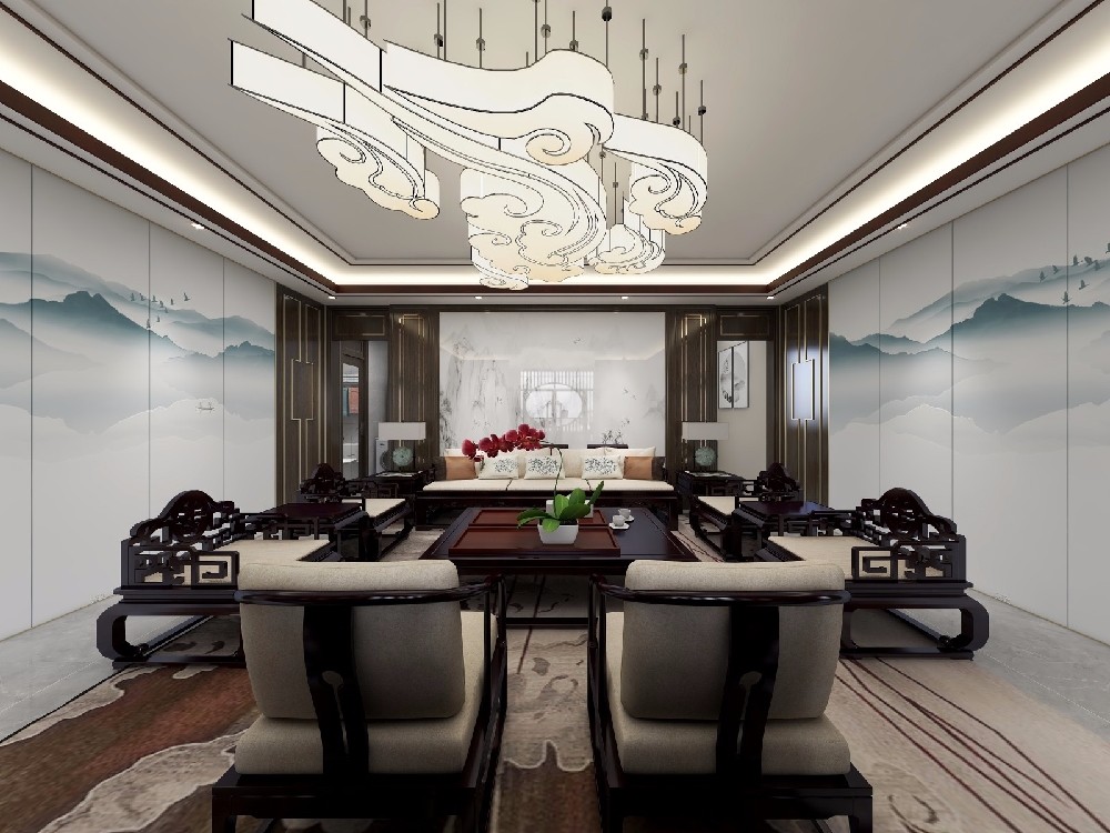 中性色彩,搭配中式壁布,沉稳大气