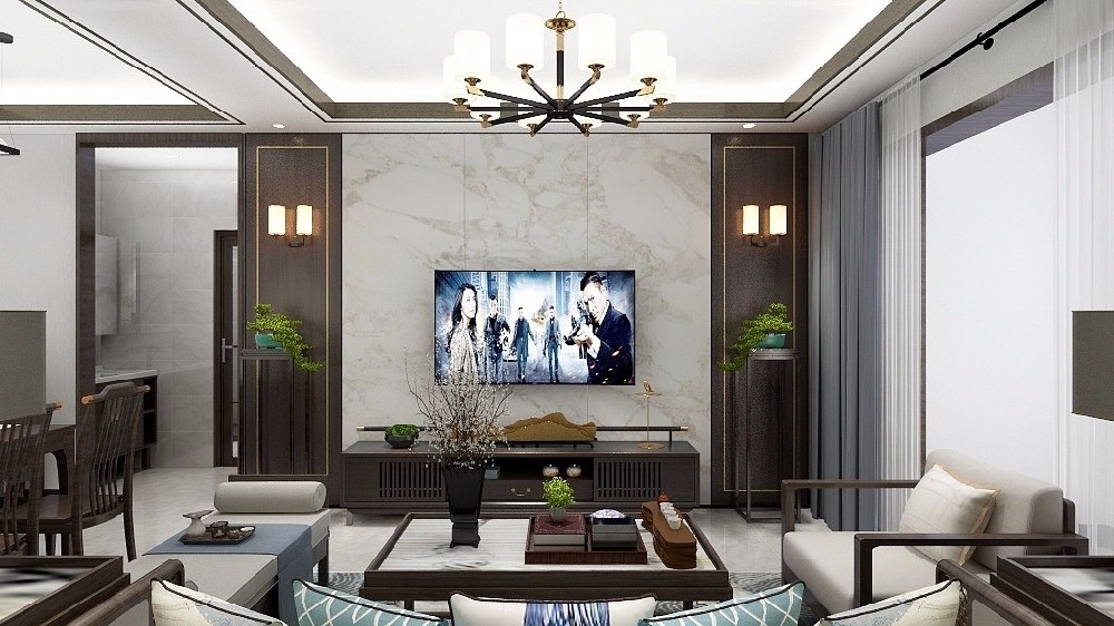 新中式与轻奢的客厅。