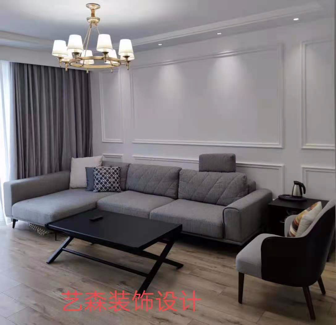 电视墙没有做过多的造型,采用石膏平线做点缀
