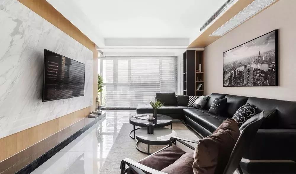 用颜色和材质贯穿全屋设计保持室风格的统一。原本屋主买的黑色皮沙发,被老婆嫌弃,结果成客厅最上档次家具。