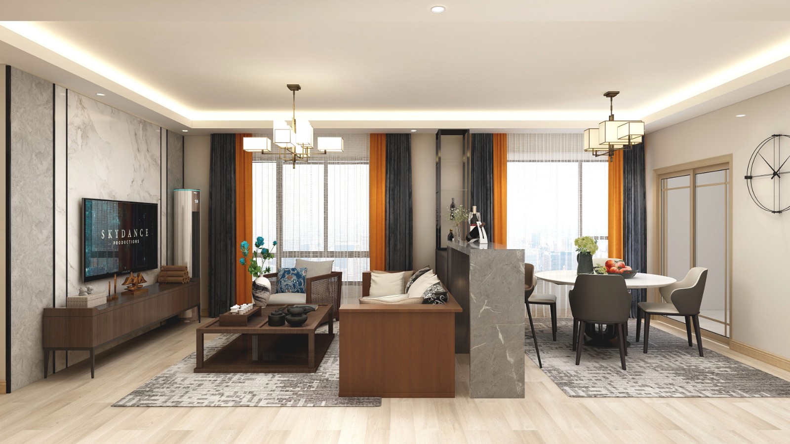 餐厅大理石吧台,与电视背景相呼应