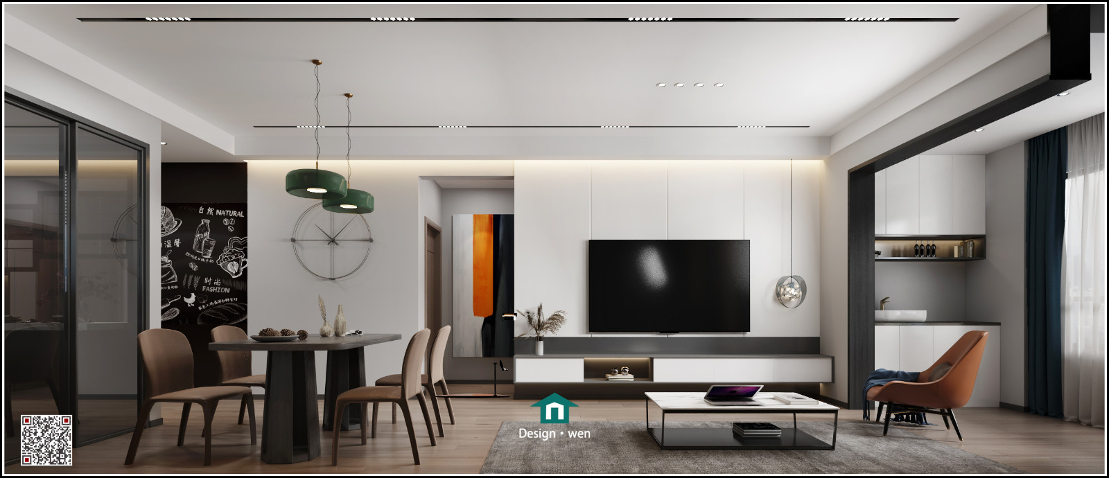 无主灯设计,光线柔和无死角,白墙,木纹砖的搭配营造出简约不简单的时尚气息。