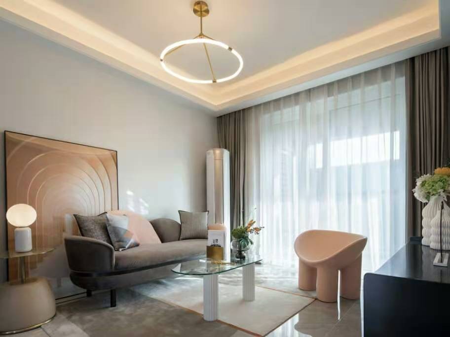 整体风格应用现代简约风在硬装简约的基础上也增加了圆形图案的设计元素