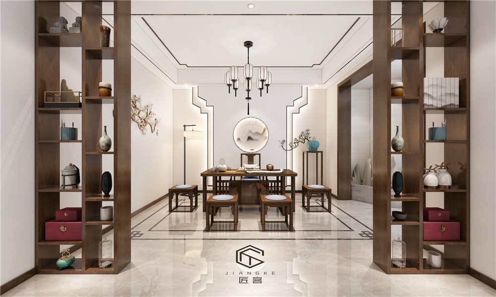 最能表达整屋的风格调性,中式元素与现代审美结合的新中式风格,打破陈旧,凝练时光中的永恒。