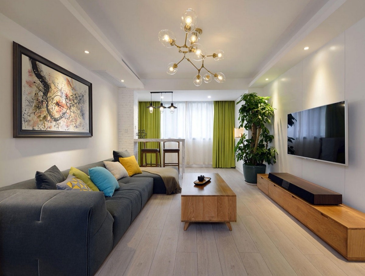 客厅用了小清新的窗帘,让整个空间间看到来温馨舒适