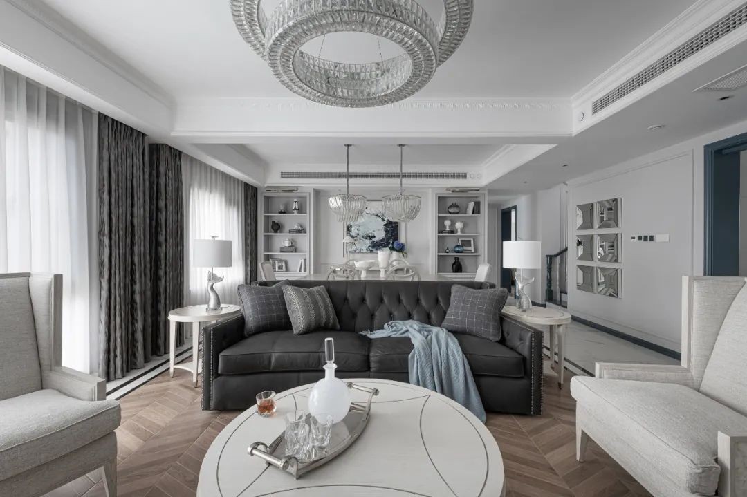 整屋穿插使用实木、大理石材、金属、玻璃,融合低调内敛的蓝、白、灰作为空间主色调宁静、雅致,营造***雅致的空间氛围。