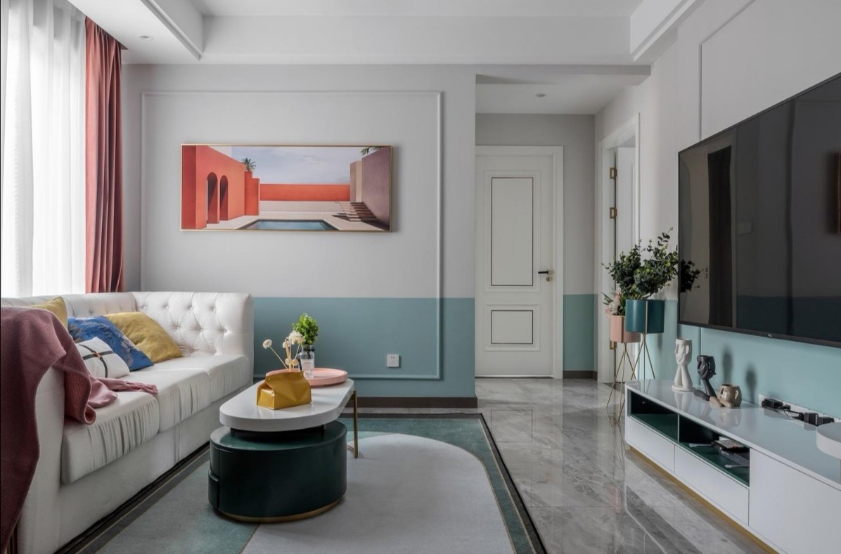 客厅用了像糖果般的莫兰迪色搭配