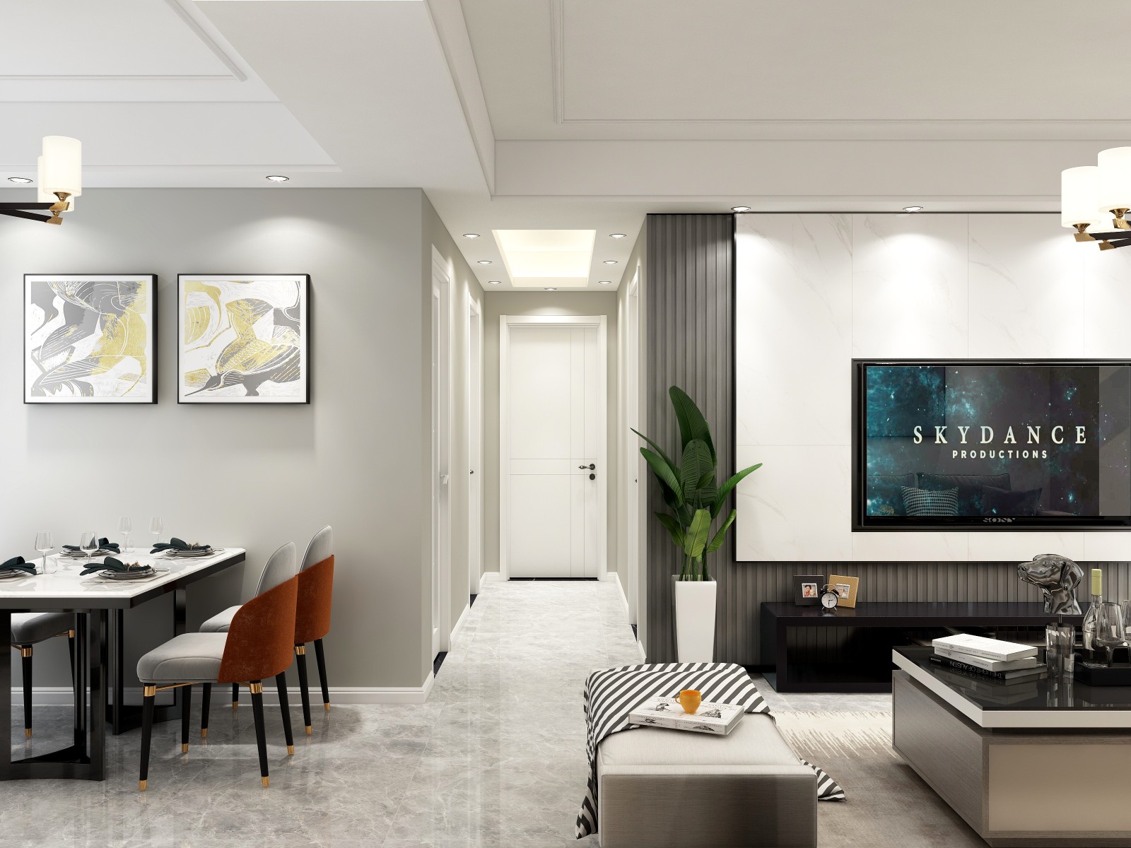 黑白灰为主题,点缀轻奢元素