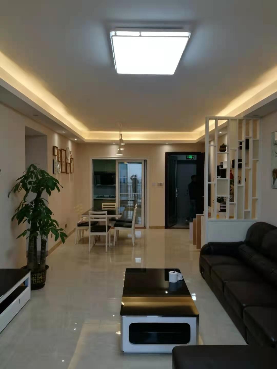 现代风格,黄色乳胶漆增加温馨感,风水屏风意义重大,美观实用。