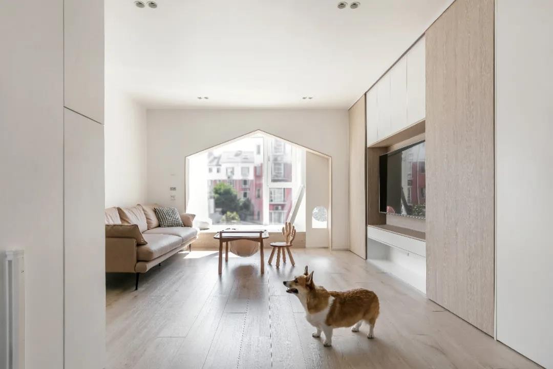 树屋左侧的圆洞引入采光,右侧小窗口可以跟孩子产生互动。