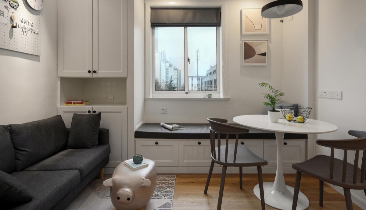 卫生间做了淋浴房,墙面的小百砖也是北欧的一个特色。