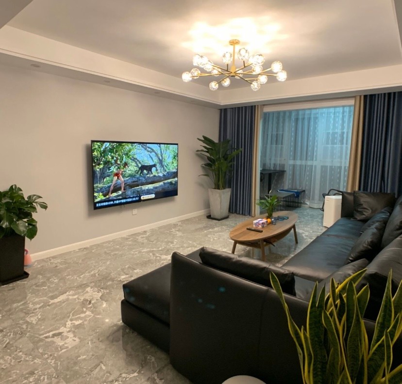 走进客厅,我们延伸厨房的墙体做了一组收纳柜,一方面明确了客餐厅空间,同时增加了空间的丰富性