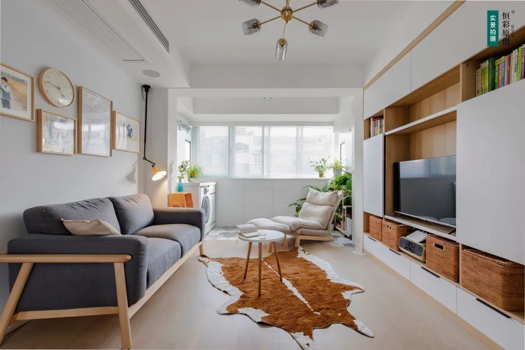 客厅户型方正,基本保留原户型格局。客厅本身空间不大,不过好在阳台空间挺大。