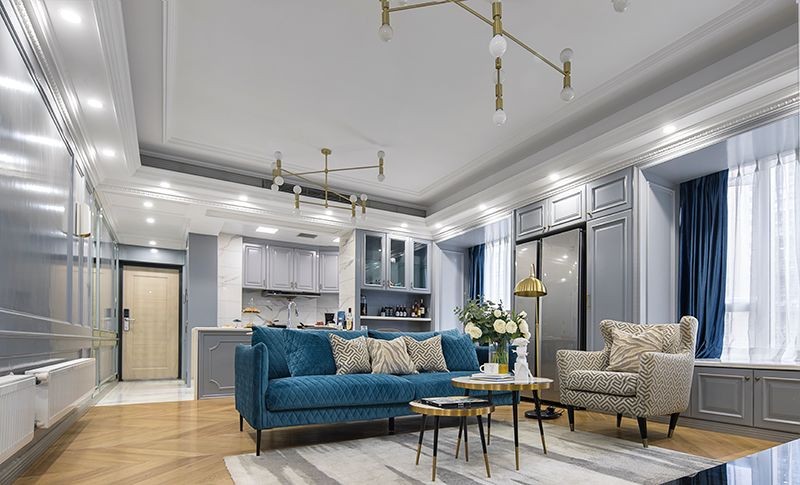 本案为117平的实景案例,整体以完美的对称要求,轻奢美式的家居氛围+在细节上非常考究的轻奢风特有的黄铜材质,在端庄华丽的空间里,营造出一个大气舒适的幸福氛围。