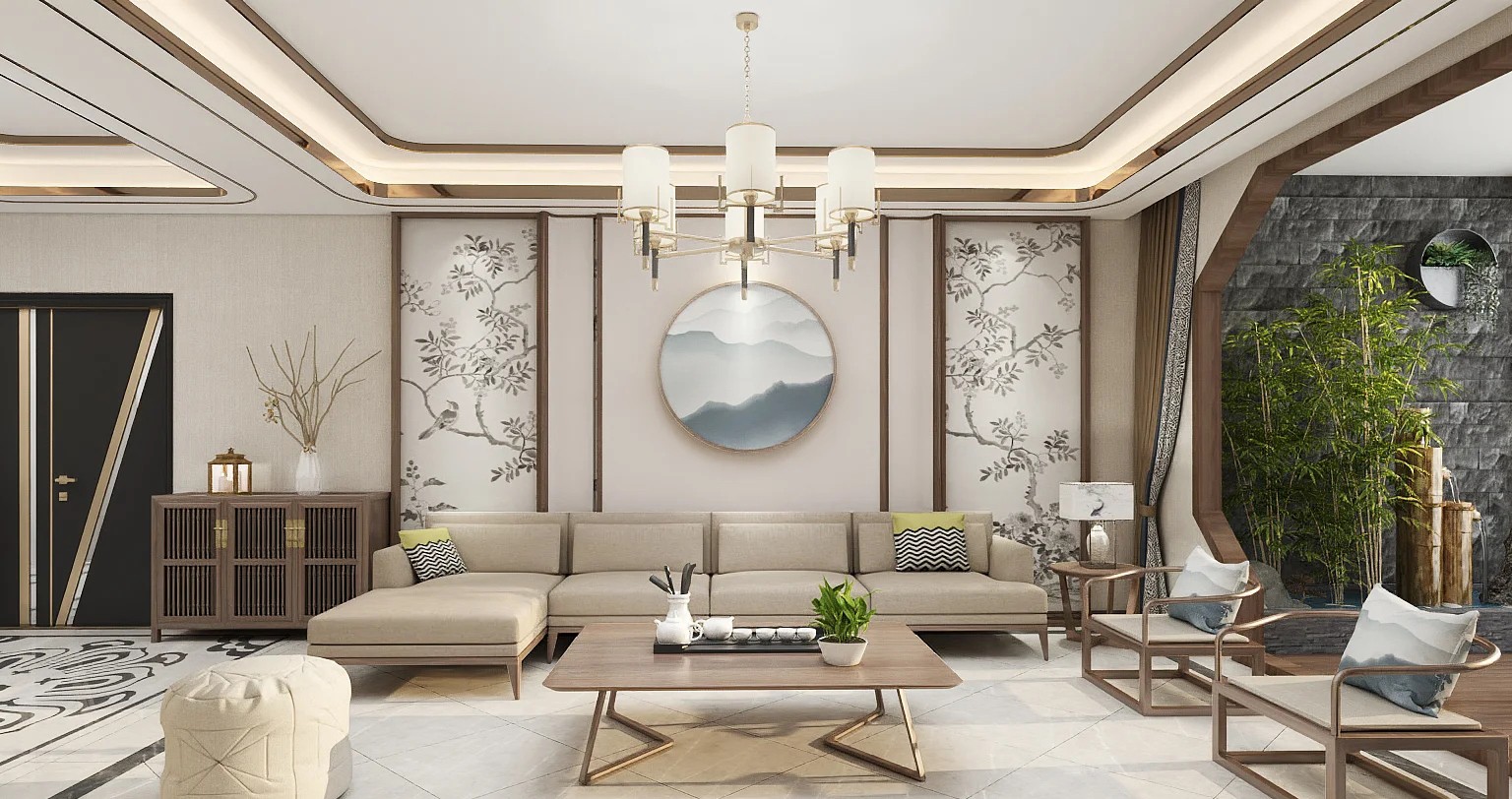 本案设计为业主一家人居住,源于业主喜欢祥和、明朗、气派有韵味的家,设计师将中式元素与现代轻奢材质的巧妙兼柔,再实现移步换景的精妙格局。