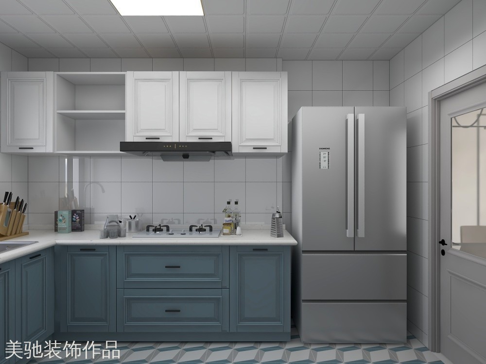灰蓝色橱柜,与众不同的配色,完美的展示了设计师独到的审美和遥远的“复古感”,有质感的色系。