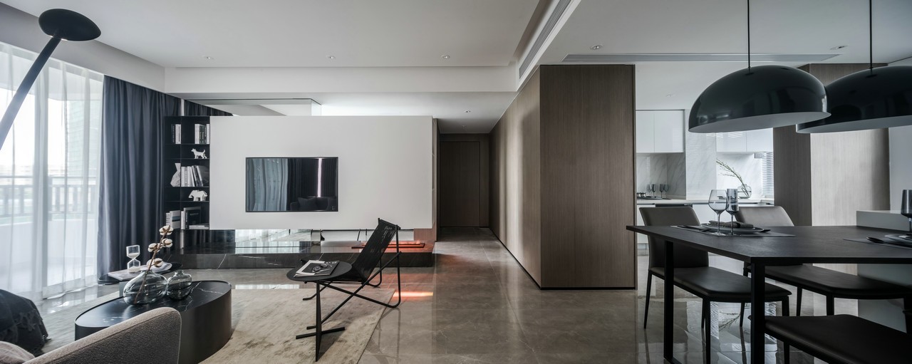 以极简的白色调辅以自然地水泥灰色,赋予空间一只的调性。