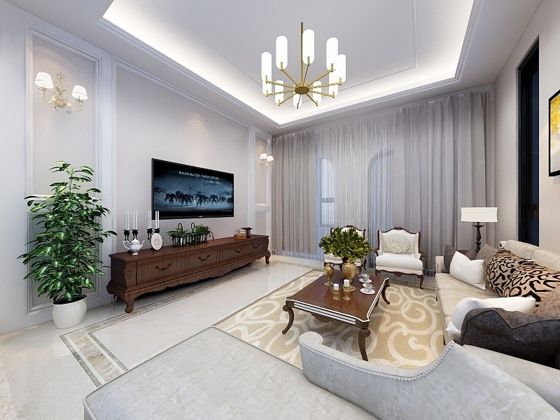 客厅作为待客区域,简洁明快,同时装修较其它空间更明快光鲜,使用大量的石膏板造型做装饰;