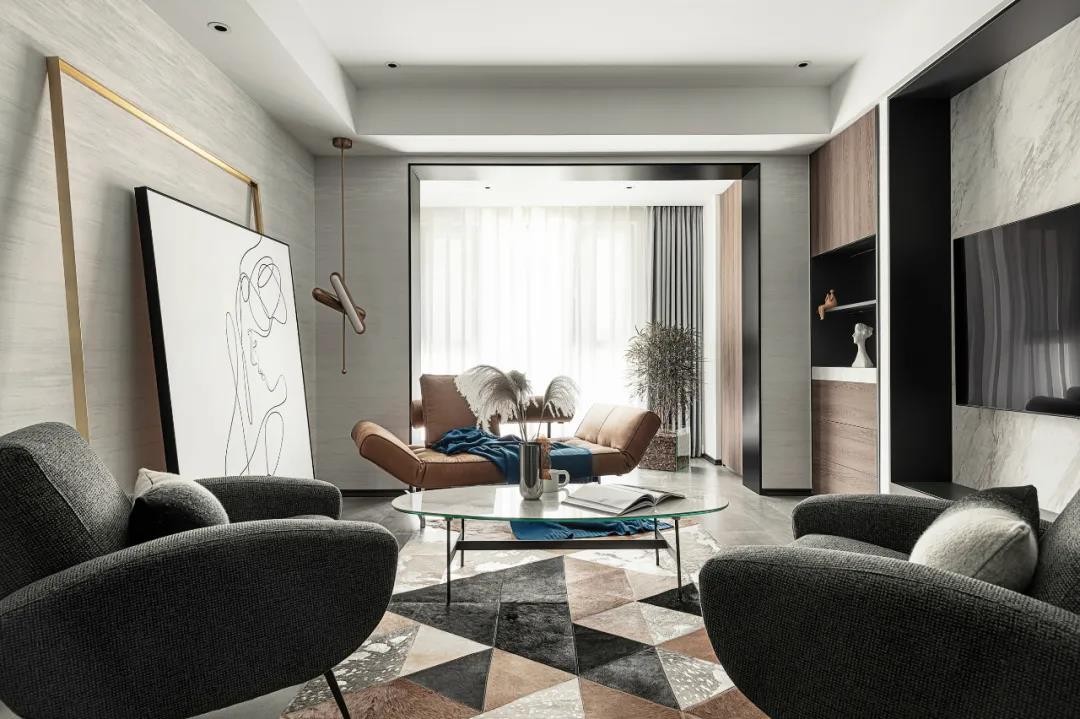 客厅家具摆放比较随意,没有固定区域,陈设方式可以自由切换。