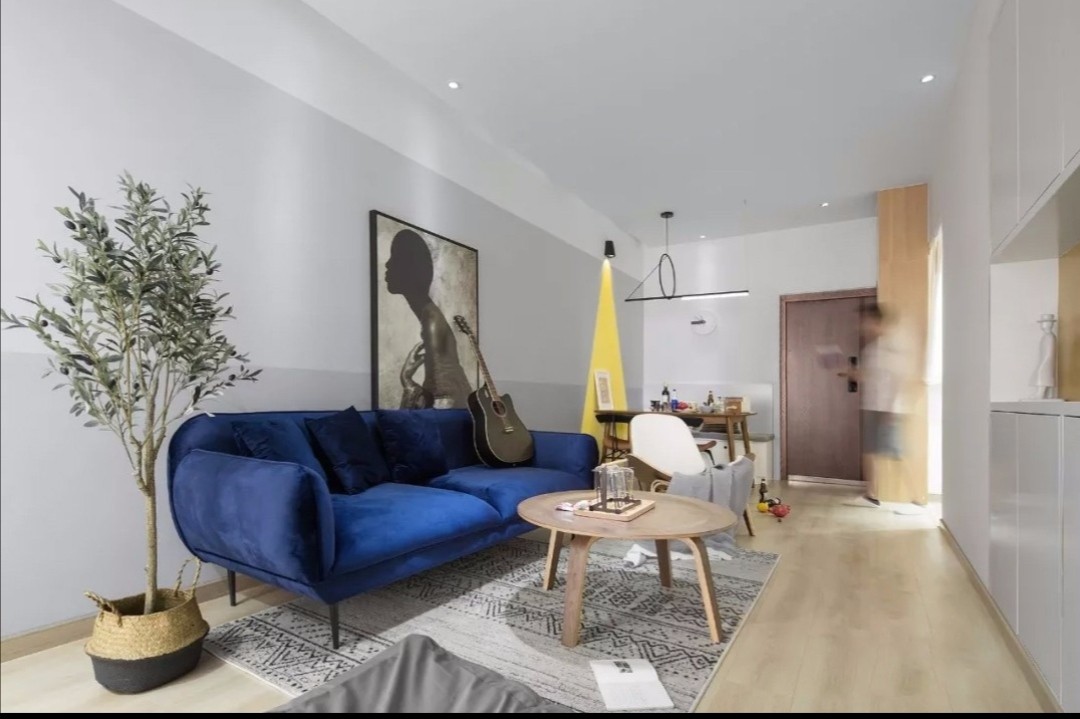 整个空间风格定调 北欧风,以雾霾蓝装点客厅空间