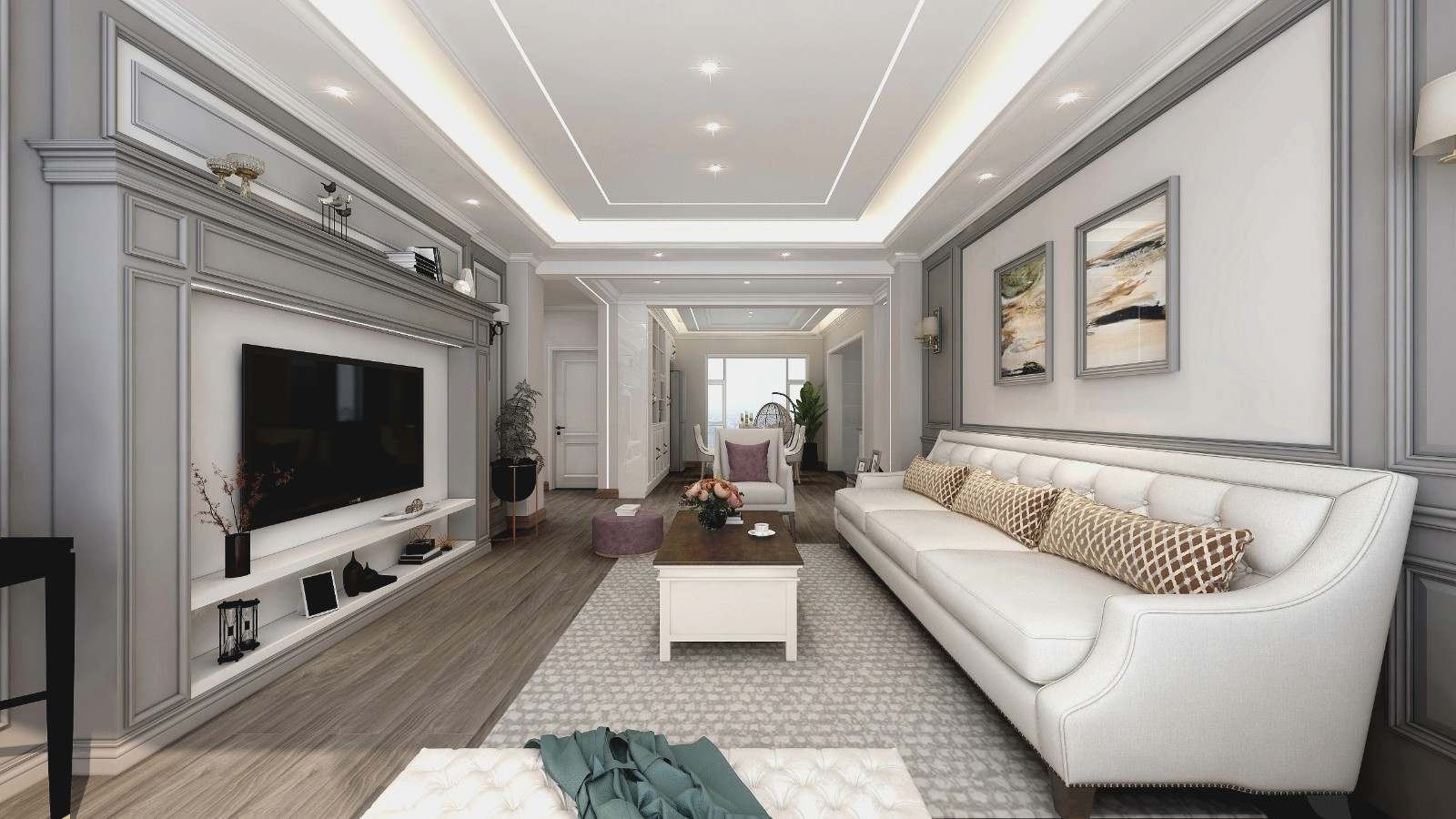 各类线条与冷色调搭配出来的简欧风更进一步的体现了业主对生活的高要求。