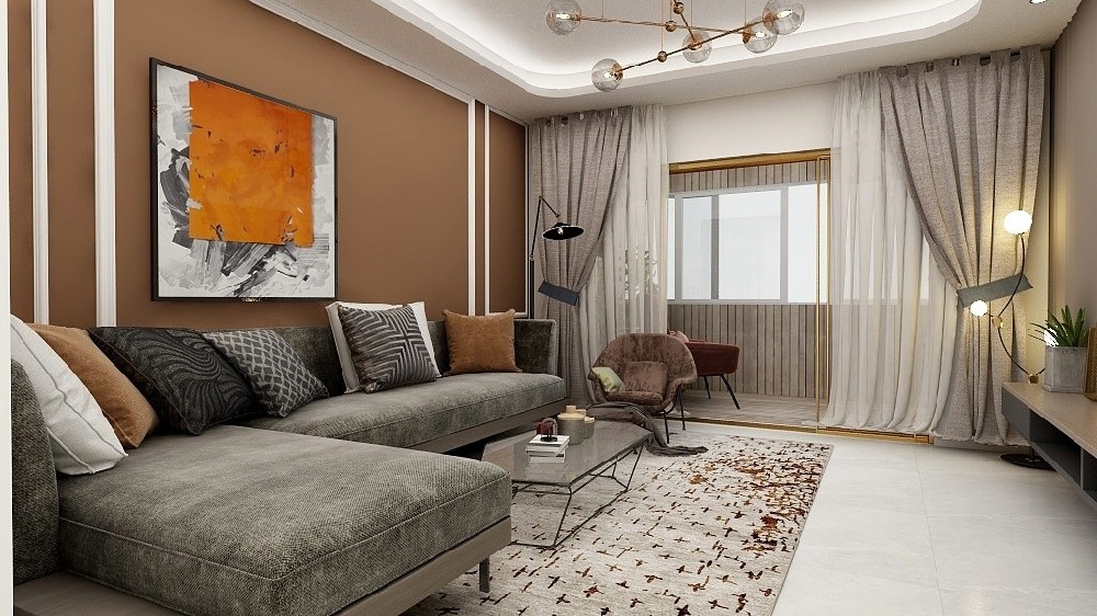 客厅带有造型的吊顶打破了直来直去的僵硬感