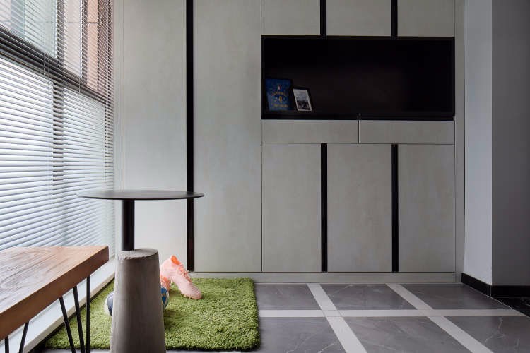 狂热球迷与DE的“数字”缘分>>这个新家是2017年双十一接房的。朋友推荐留下了不错的***印象;逛了两次购物狂;又三顾茅庐前去现场咨询。终于在2017年的******,业主小哥和DE设计事务所“喜结良缘”。如果说入户门厅摆放的绿茵方地毯就足以标榜自己是球迷,那你就太小看作为足球狗的狂热了,家里除了呐喊和狂欢,还有随处暴露的球迷属性……