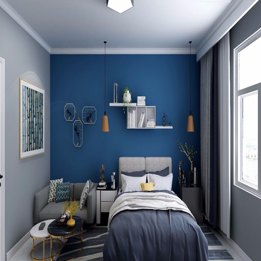 蓝色墙漆增加现代感,把以往的石膏线换成更直观的线条及现代有简约
