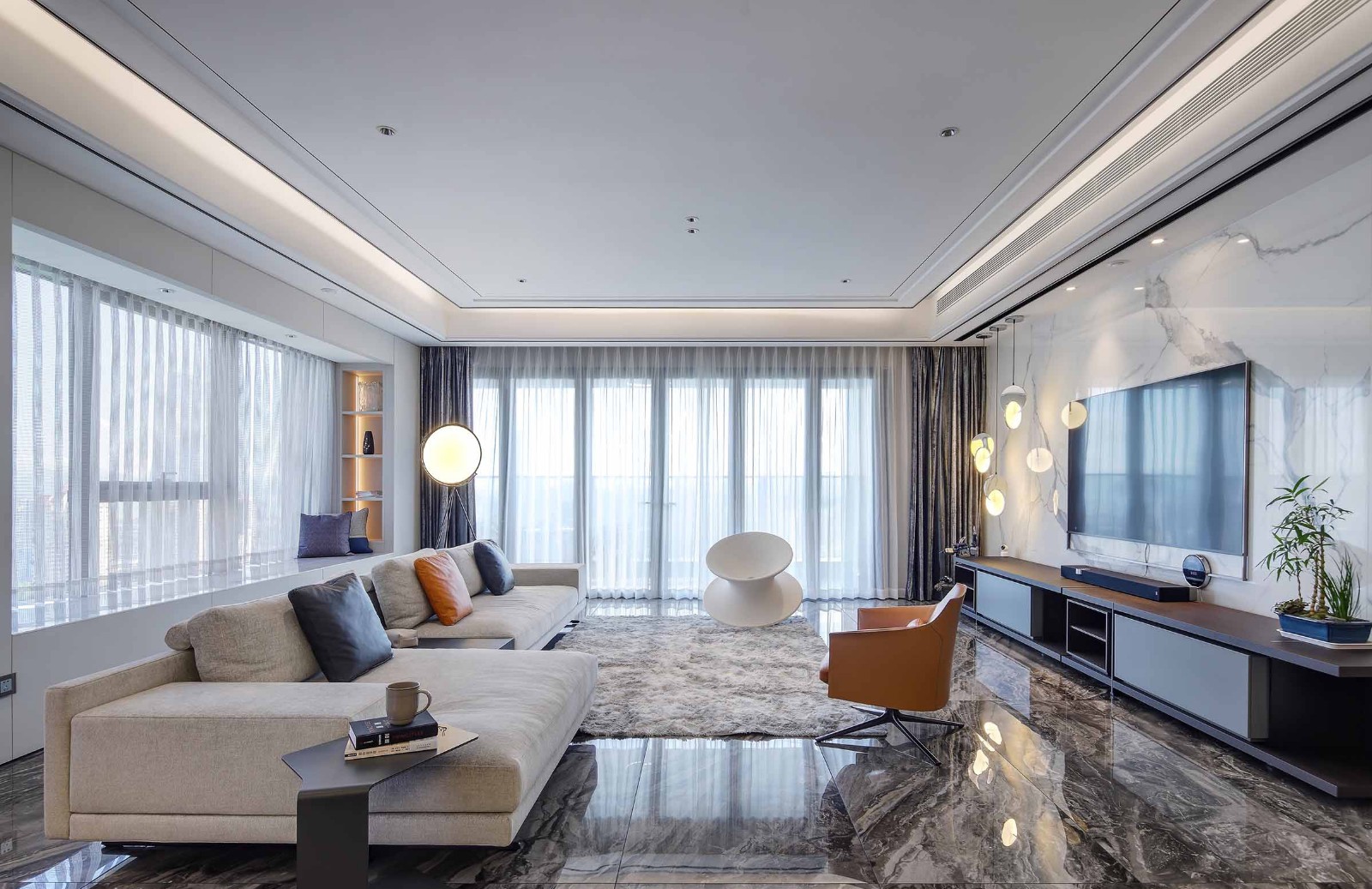 客厅大道至简的设计中蕴涵着多元性的内核,从米色的沙发到深咖色的电视柜、从烟波纹的地板到蝉翼般的纱帘,不管是材质与色彩的刚柔并济,还是家庭成员各自元素的分配组合,都体现出个性与共***织下的包容感。分散光源的巧妙组合、明暗层次的虚实对比,进一步增强了客厅的质感与空间感