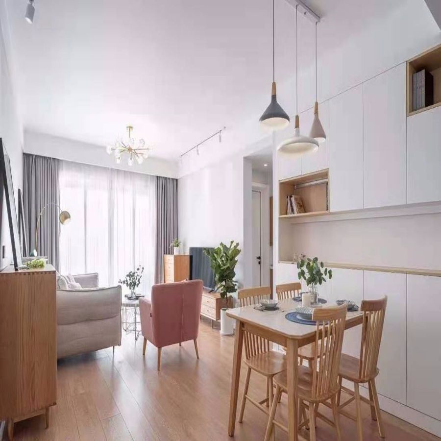 整体空间偏小,打造整体储物柜增加储物空间,整个客餐厅以原木为主,看上去干净明了