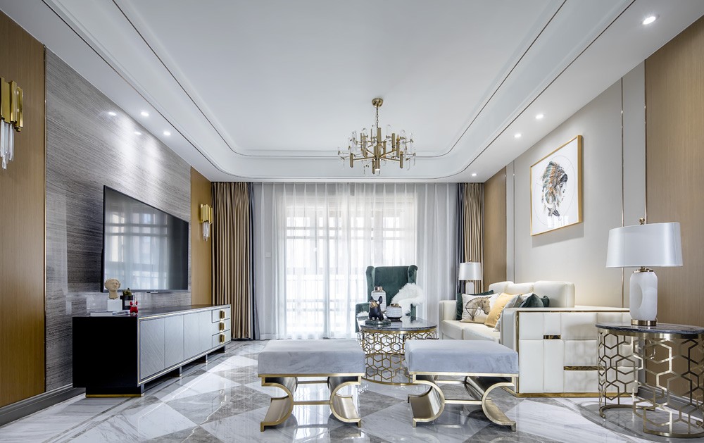 整个主卧空间看起来宽敞明亮,同时也将女主人的饰品作为一种摆件展示出来,实用有时尚。