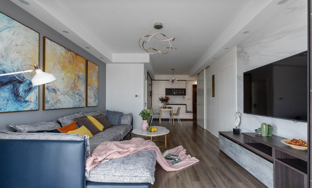 明亮的客厅,开放式的空间,不会给人压迫感,恰到好处的线条也给人们精致简洁的美。整体非常柔和,一份扑面而来的舒适感,让人卸下一身的疲惫。