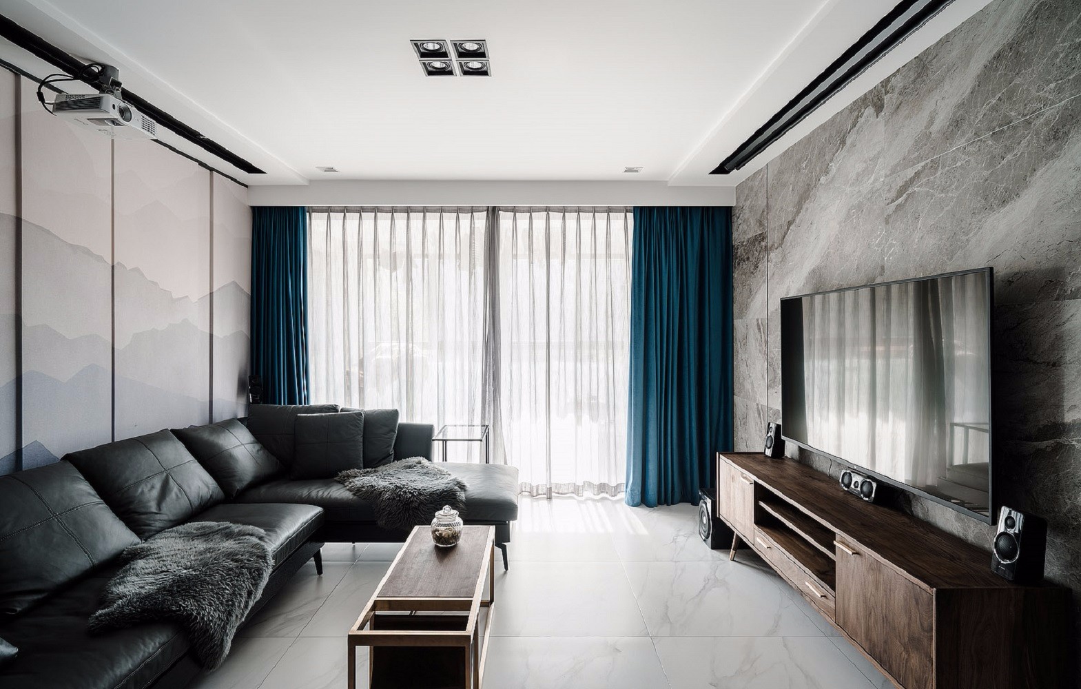 黑白抽象画品、纯色与千鸟格布艺的混搭,形成明暗对比制造戏剧化的张力,让空间充满故事性,赋予法式风格更加时尚的基调。