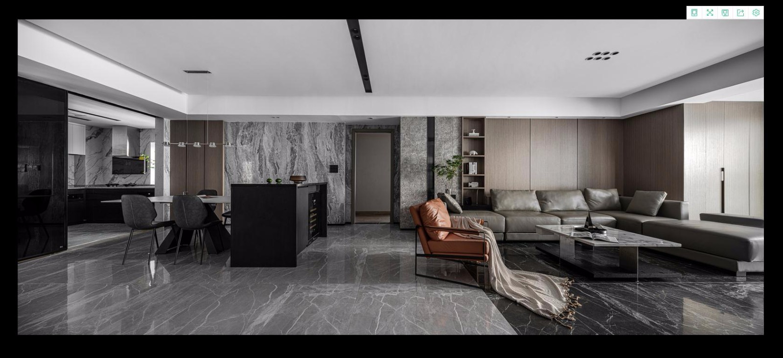 全开放的布局,整个客餐厅毫无阻隔,餐厅和客厅之间没有隔墙,减少了两个功能区的隔阂,增加了使用面积,同时也让采光和通风性得到了大大加强。
