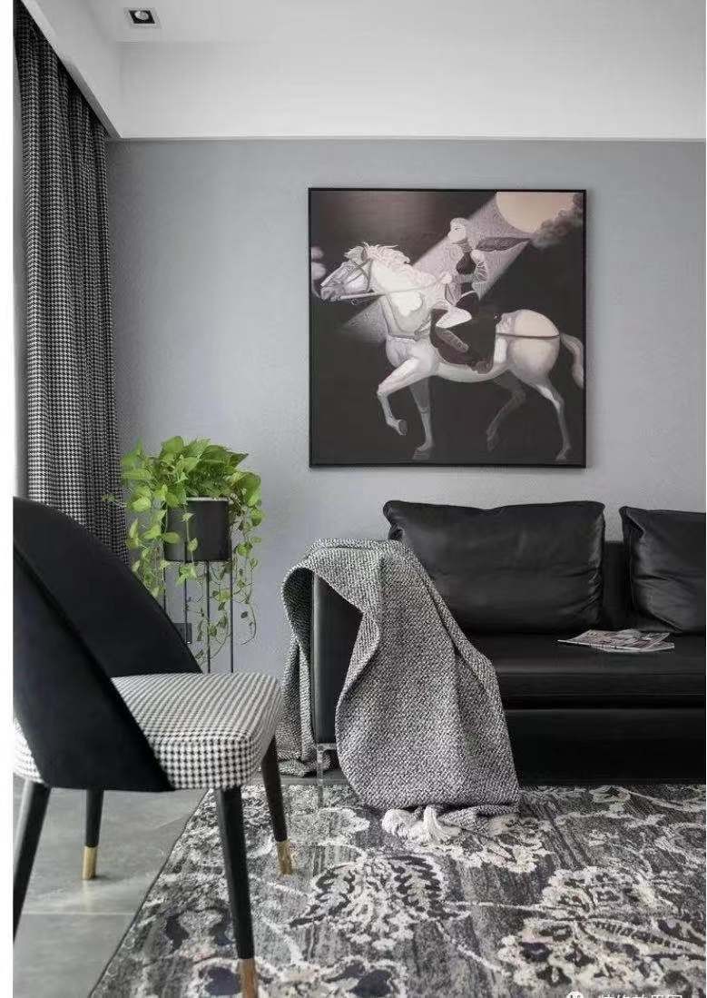 千鸟格花纹为其更添一份优雅气质,白马骑士挂画气势恢弘,体现浓郁的艺术感。