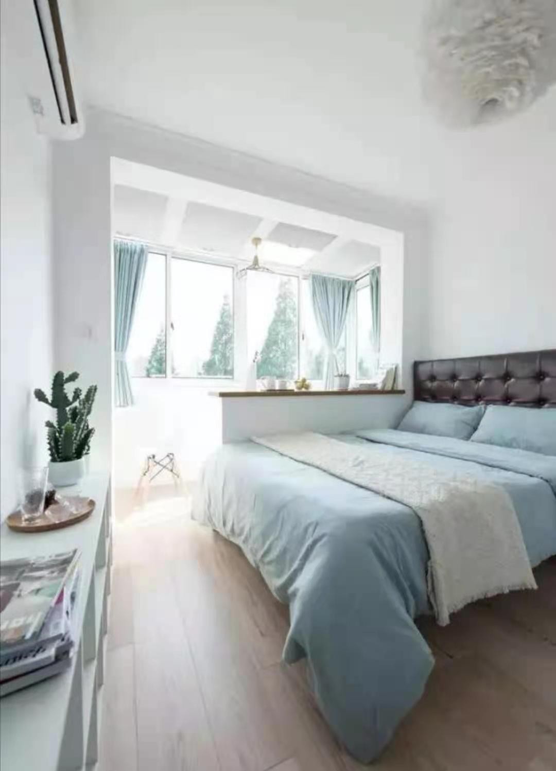 羽毛主吊灯浪漫唯美,真皮床头更加舒适。