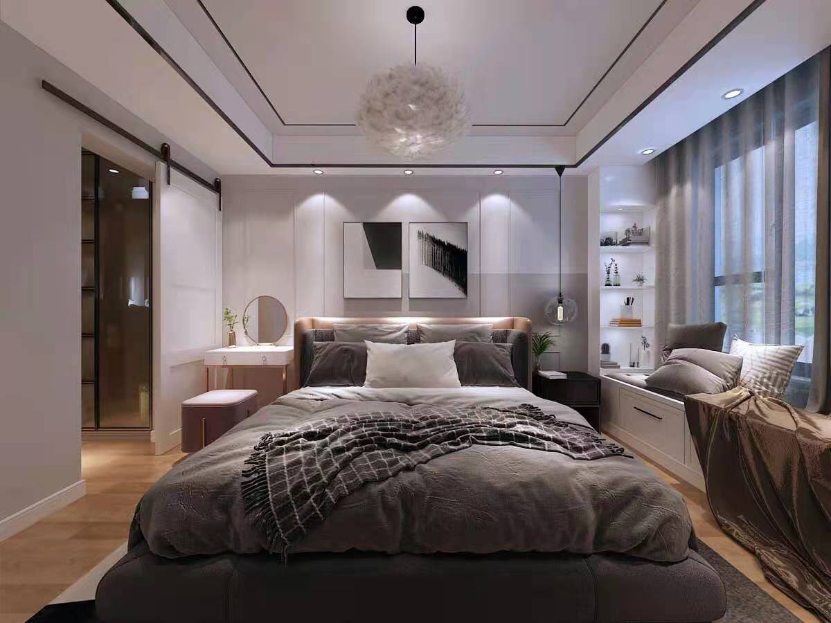主卧门洞外移后再入门处新建衣帽间,内部划分东西两侧衣柜,保留了南侧小窗的采光与通风。